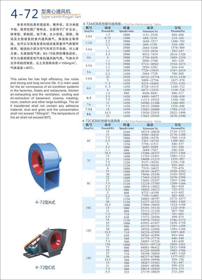 4-72型離心通風(fēng)機(jī)本系列風(fēng)機(jī)具有效率高、噪聲低、壓力曲線平穩(wěn)、使用范圍廣等特點(diǎn),主要用于廠礦企業(yè)、體育館、歌劇院、地下室、大小賓館、酒樓、商場(chǎng)及大型建筑的室內(nèi)通風(fēng)換氣,降溫除塵等用途,也可以與其他各類機(jī)械設(shè)備配套作氣體循環(huán)使用。輸送的介質(zhì)為空氣和其它不自燃、對(duì)人體無(wú)傷害、無(wú)腐蝕性氣體;B4-72采用防爆電動(dòng)機(jī),可作為易燃揮發(fā)性氣體的通風(fēng)換氣用,氣體內(nèi)不允許有粘性物質(zhì),塵土及固體雜質(zhì)≤150mg/m3,氣體溫度≤80℃。